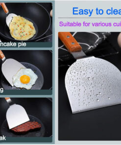 Excellent materialOur metal spatula is made of healthy stainless steel. with excellent thermal insulation and a sturdy. non-slip wooden handle. allowing you to use it flexibly for any cooking need! |