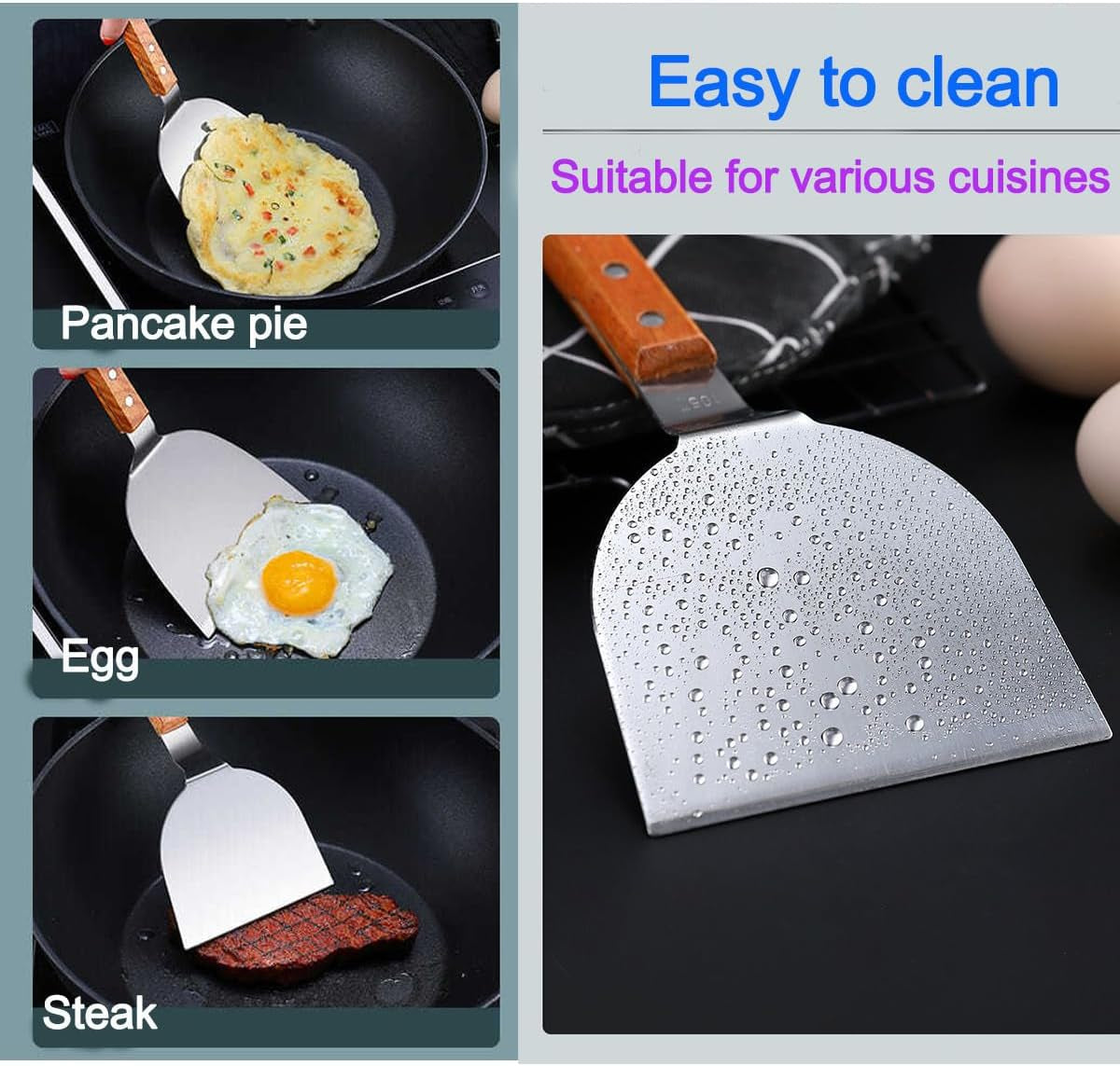 - ✅【Healthy material】: Our kitchen metal spatula is made of high-quality stainless steel. and the wooden handle is insulated from heat. making it easy to use in the kitchen or outdoors!