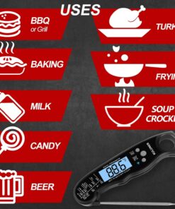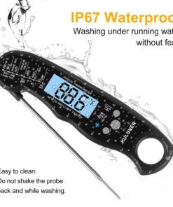 KULUNER TP-01 Waterproof Digital Instant Read Meat LCD Thermometer with 4.6 Folding Probe Backlight & Calibration Function for Cooking Food Candy. BBQ Grill. Liquids.Beef(Black)