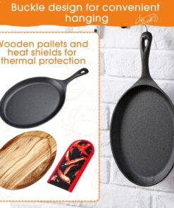 - Comprehensive Package Set: this package comes with a generous offer about 2 cast iron plates. 2 wooden trays to help you serve delicious masterpieces. and 2 insulated pot handle mitts; Not only does this cater to your cooking needs. but it also serves as an ideal gift choice for family. friends. or any cooking enthusiasts; Its wide application extends to grilling. frying. roasting. and more. making it a must have addition to your kitchenware collection