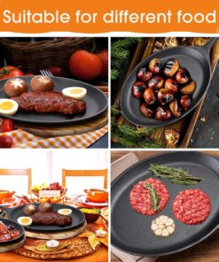 - Wide Applicability: the fajita skillet set showcases nice versatility in culinary use; It is not confined to serving fajitas alone but extends to various dishes including meats. vegetables. seafood. and more; The set is designed for use in the kitchen. catering service. Family gatherings. BBQ; They are also nice as practical and beautiful gifts for cooking family and friends