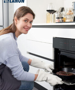 - Food grade liquid silicone – LANON is the first company to produce liquid silicone oven gloves. Our gloves are manufactured of temperature-resistant liquid silicone. an advanced material that possesses high tensile strength. stands up to daily use. and maintains its performance day after day.