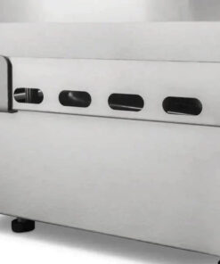 But things really start to take off for this unit with its cooking surface. What you see from the top is a solid 304 stainless steel cook top. If you’ve ever cooked on a griddle with a stainless steel cooking surface you know that though it’s easy to cook on and clean up. the stainless steel doesn’t move the heat from the burners around the cook top efficiently enough to make it even all across the surface. giving you hot and cold spots.