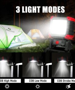 - 2100LM & 3 Light Modes: The 2100 lumens clamp work light has 3 light modes( COB high mode. COB low mode and COB strobe mode). The ON/OFF button allows you to easily cycle through the 3 light modes. The work light with clamp is enough to deal darkness in your life.