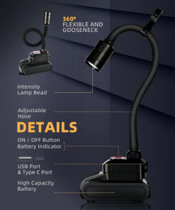 Bendable inspection light features 360°flexible silicone-coating gooseneck hose and high-quality aluminum alloy makes this LED gooseneck work light durable.