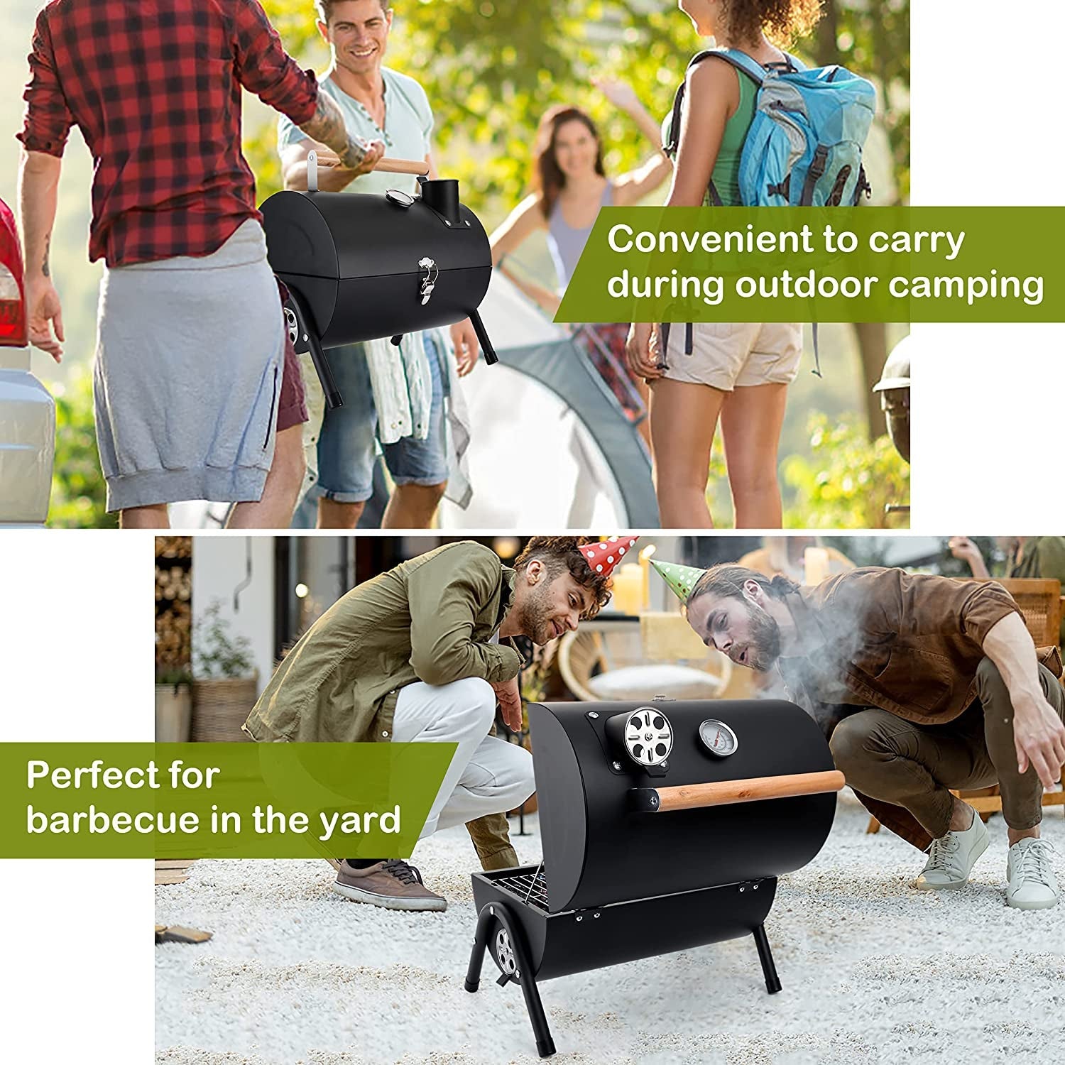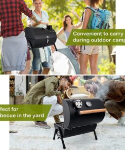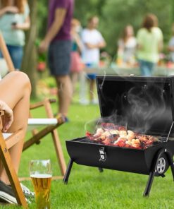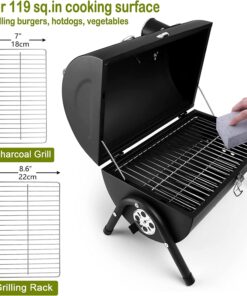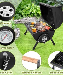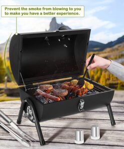 - Lightweight & Portability. lightweight outdoor grill is 16 L x 11 W x 14.9 H. can be carried anywhere in the trunk of the car. equipped with a secure lid lock for easy lifting and walking. ideal mini grill for outdoor camping. picnics. beaches. patio. courtyards. RV trips. barbecue party