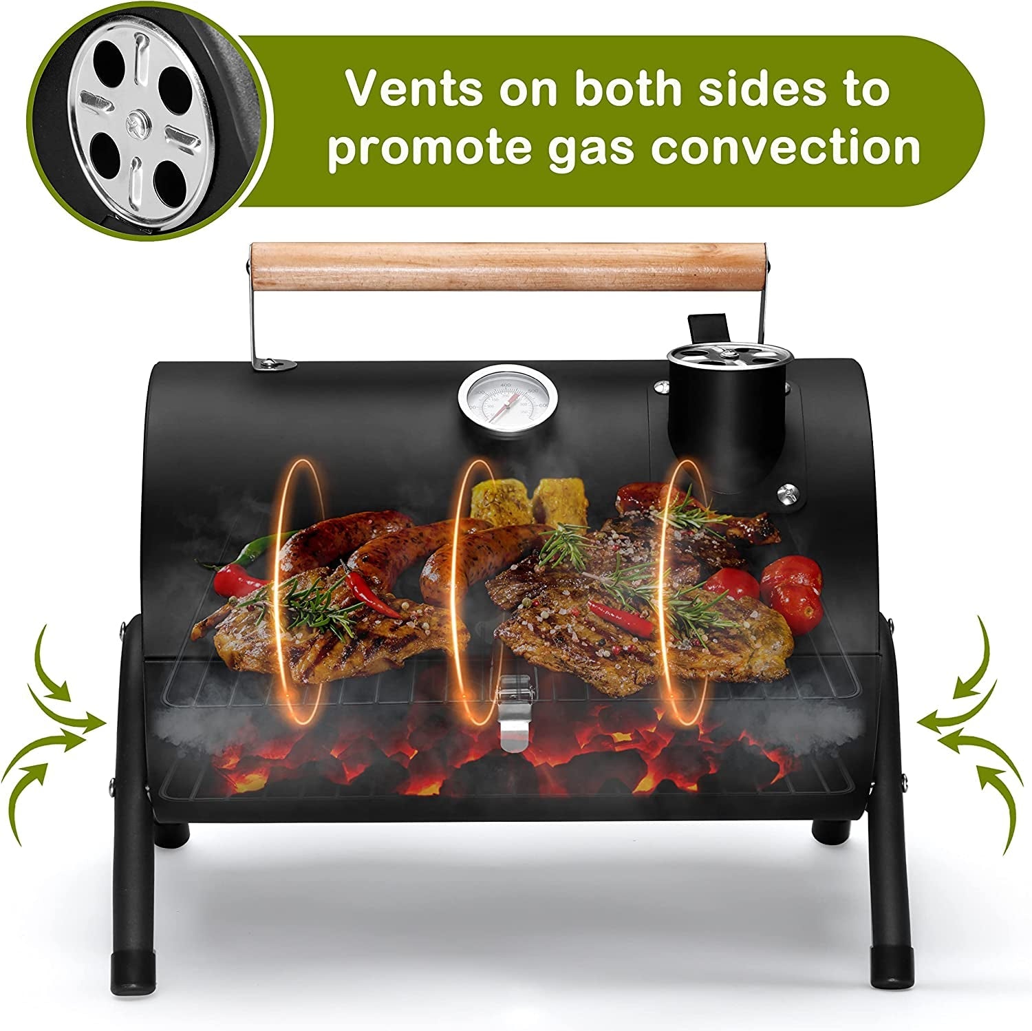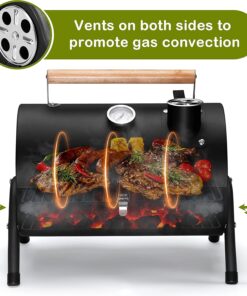- Double vent system & precise monitoring. dual ventilation design and chimney promote multi-directional air flow. regulate the air content in the tabletop grill to fully combust charcoal. accurate monitoring of temperature through the thermometer. keep the meat fresh and tender