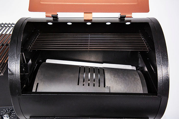 The Lexington features two cooking racks and 540 square inches of porcelain-coated cooking surface. It’s a heavy-duty grilling machine that’s built to last and is perfect for all your backyard cooking needs. Thanks to the innovative slide plate flame broiler. you can easily switch between indirect and direct heat while achieving up to 1000° degrees F of direct-flame searing. With a robust temperature range of 180 to 500°F and our built-in fan-forced convection cooking. grilling. smoking. baking. roasting. searing. braising. barbequing. or char-grilling are at your fingertips with the push of a button. The stainless-steel meat probe and dial-in digital control board work together. so you never have to worry about overcooking on the grill again. And no need for natural gas or propane.