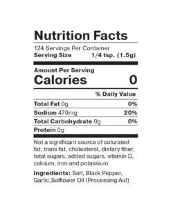 Ingredients: salt. coarse-ground pepper. garlic. and safflower (oil).