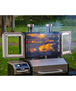 - Wood Pellet Grill combined with a Double-Door Smoker Cabinet