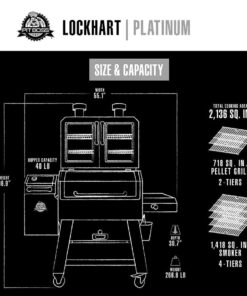 Pit Boss Platinum Series Lockhart Grill offers the ultimate backyard cooking experience. The Lockhart features more than 2.000 sq in. of cooking surface with a double-door smoking cabinet combined with a Bigger. Hotter. Heavier wood pellet grill on the bottom.