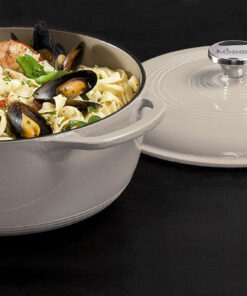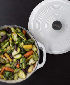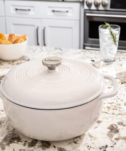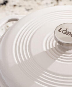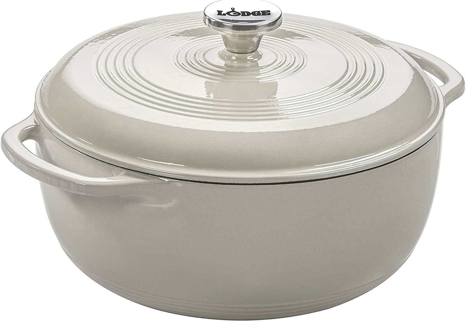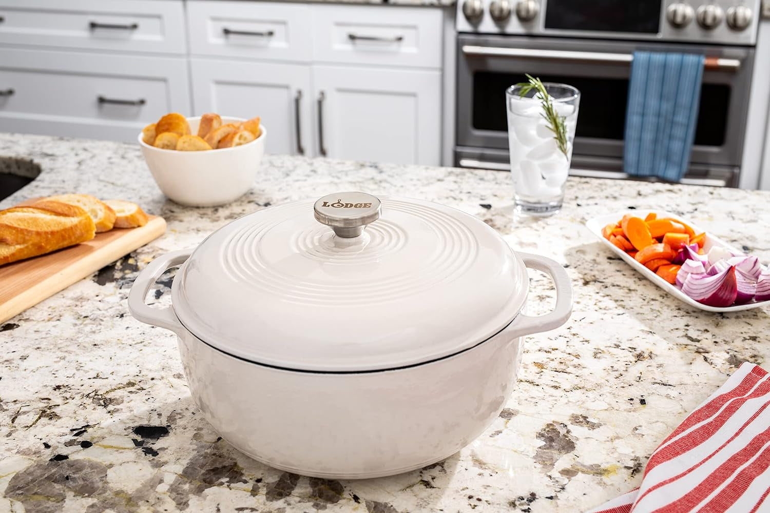 Lodge 6 Quart Enameled Cast Iron Dutch Oven with Lid – Dual Handles. Oven Safe up to 500°F. Stovetop Compatible – Marinate. Cook. Bake. Refrigerate & Serve – Oyster White