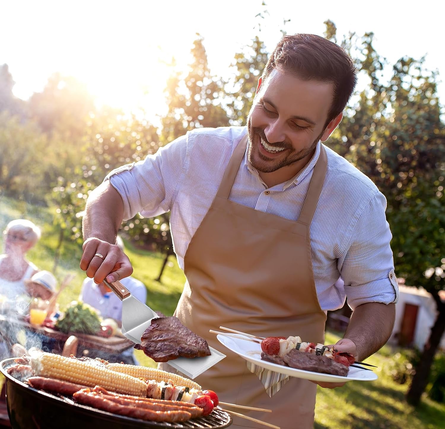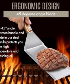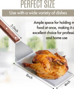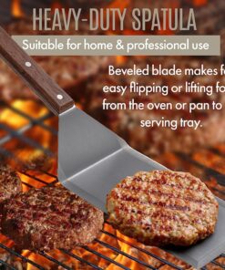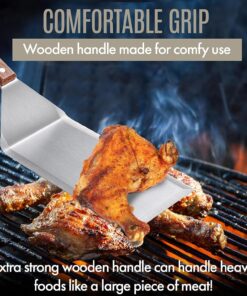 - Easier Flipping & Lifting: Whether it’s grilling succulent steaks. tasty burgers. or sticky ribs. our kitchen spatula with wood handle will let you turn and serve with ease. Thanks to the beveled edge. our grilling spatula makes it easier to scoop up food and do more in the kitchen