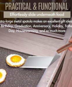- Long Multi Purpose Spatula: Our stainless steel spatula for cooking is designed with beveled edges and measures 8 inches long allowing you to easily flip. lift and serve foods. Our metal grill spatulas are long enough to be suitable for most pans. grills. griddles. and more