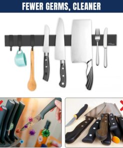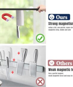 - MULTIFUNCTIONAL & 2 TYPES OF INSTALLATION: We have added the hook design to this magnetic knife rack. not only for attaching. but also for hanging. also. you can choose self-adhesive tape (no drilling) or screw installation. keeps your kitchen. garage. workshop etc. beautiful and neat.