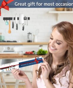 - IDEAL FOR GIFTS: Our well-thought-out magnetic knife holder is the Ideal gifts for your mother. friend. or a cooker etc.. which makes your kitchen tidier and safer and you do not worry about scattered knives that mess up your kitchen or even scratch your children’s hands.
