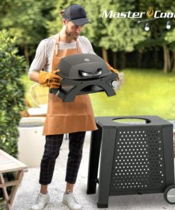MASTER COOK Propane Gas Grill. Portable Tabletop Barbecue Grill with Cart for Patio. Camping. Travel