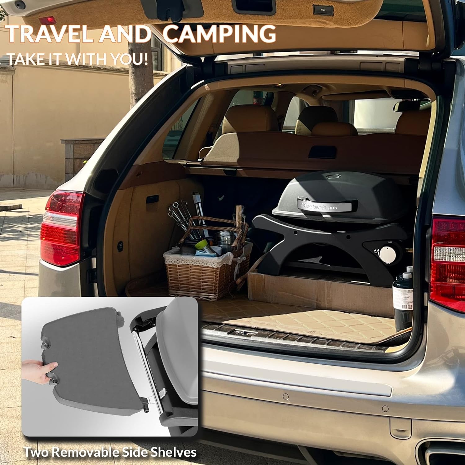 - ❤FEATURES – Two removable side shelves keep utensils and sauces handy can hold up to 4.4 lbs. built-in temperature gauge for ideal roasting and creates even heat. helps the food well-done at all time