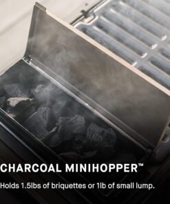 - Charcoal MiniHopper: holds 1.5 lbs of briquettes or 1lb of small lump for up to 4 hours of use