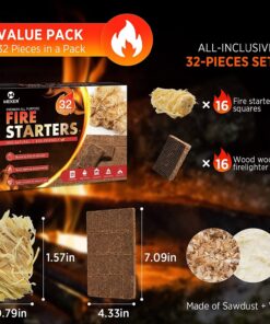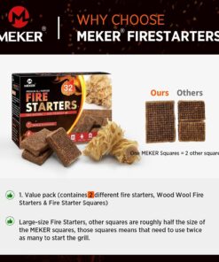 MEKER Fire Starters – Natural Fire Starters for Fireplace. Campfires. Fire Pit. BBQ Grill. Wood Stove. All Weather Charcoal Starter. Wood Wool Firelighters & Odorless Fire Starter Eco Friendly