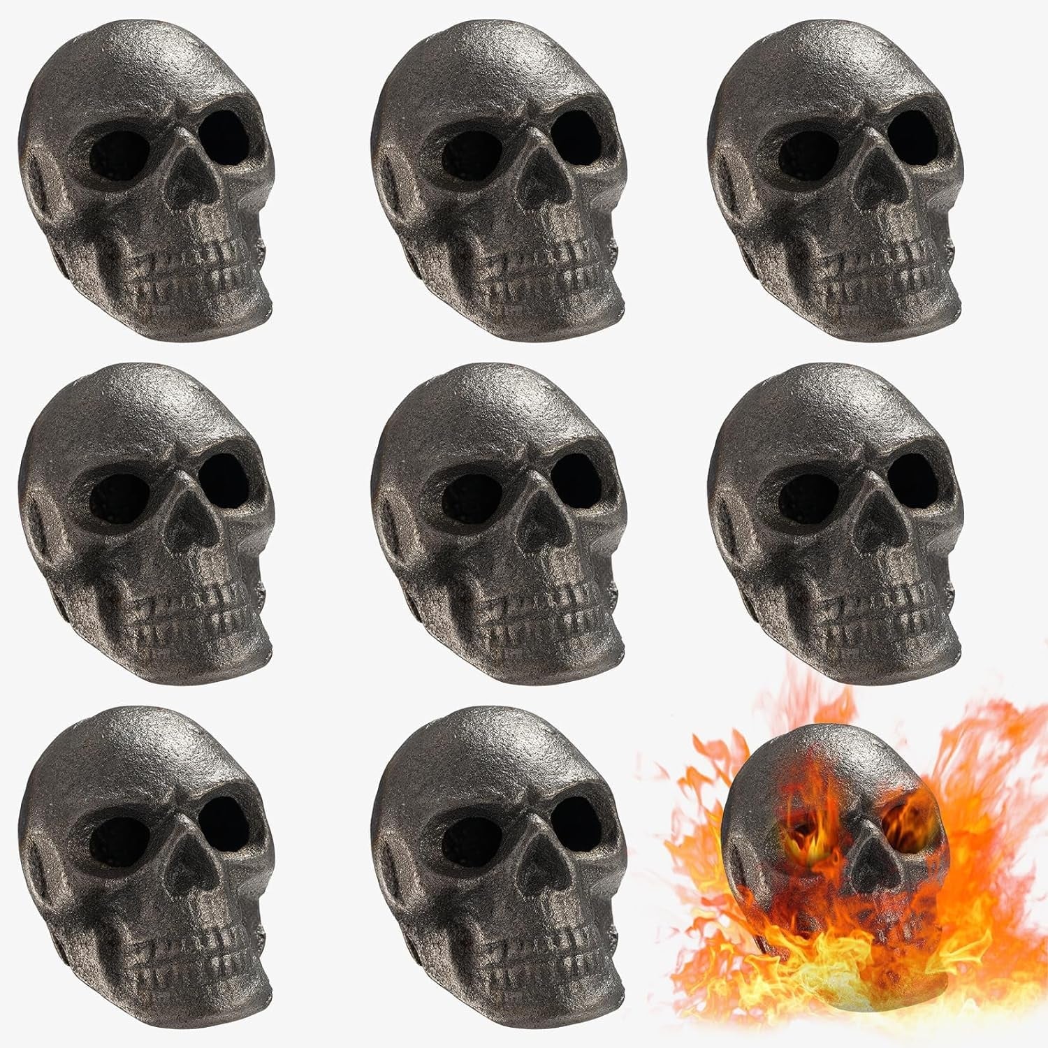 - The Metal Fire Pit Skull Set of 8 PCS. Size: 2.5 inches is a captivating and innovative addition to any indoor or outdoor space that boasts a fireplace. fire pit. bonfire. or campfire. These unique and fireproof metal skulls serve as both functional fire pit accessories and striking decorative elements. Crafted with meticulous attention to detail. these skulls are designed to add an element of intrigue and a touch of the macabre to your surroundings.