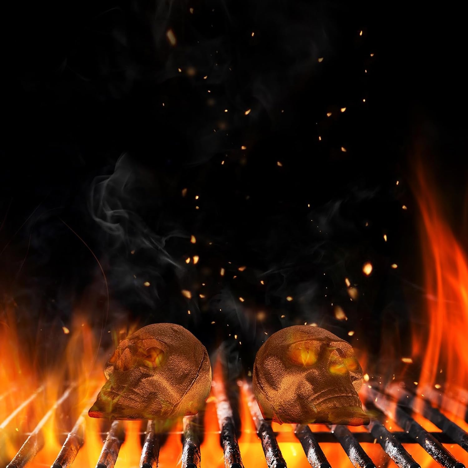 - The Demon skull charcoal – One of the standout features of the Metal Fire Pit Skull Set is its versatility. You can place them in your indoor fireplace to transform it into a gothic masterpiece or arrange them around your outdoor fire pit to create a truly captivating focal point for your gatherings. Whether you’re hosting a bonfire night with friends or enjoying a cozy evening by the campfire. these skulls will instantly elevate the ambiance. making your experience all the more memorable.