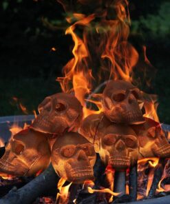 - The Metal Fire Pit Skull Set of 8 is particularly well-suited for those looking to add an extra layer of spookiness to their Halloween decorations. Placing these skulls in and around your fire feature will instantly evoke a sense of eerie enchantment. making them a must-have accessory for your haunted house or Halloween party. Their realistic design and fireproof construction add an authentic touch to your spooky decor.