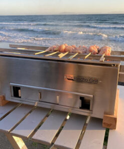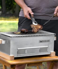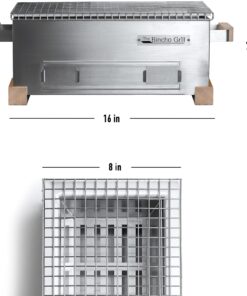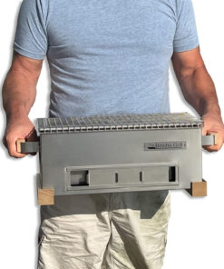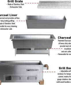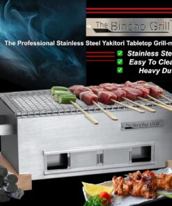 The Japanese style tabletop yakitori charcoal grill with easy portability. Take it picnic. beach. camping or your own backyard. Made from heavy gauge stainless steel with 3/16 aluminum charcoal insert lined with stainless steel liner.