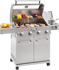 Monument Grills Larger Convertible 4-Burner Natural Gas Grill Stainless Steel Cabinet Style Propane Grills. LED Controls.Side Burner(Without Conversion Kit)