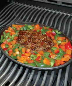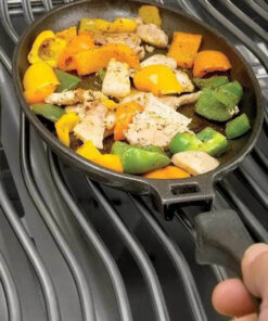 The Napoleon Professional Cast Iron Skillet is an ideal choice for first-time cast iron users. Versatile and durable. it can be used directly on the grill’s cooking grids. on a side burner. or even on your stove. The removable handle stays cool during cooking. making it easy to move and remove your food. Seasoning the skillet is a breeze – simply wash. apply a thin coat of melted shortening or oil. and bake in a preheated oven at 350°F for an hour. This ensures a long-lasting non-stick coating that will withstand years of use. perfect for cooking dishes like sizzling fajitas. Just like in a restaurant. you can bring your sizzling fajitas straight from the grill to the table for a delightful family-style dinner.