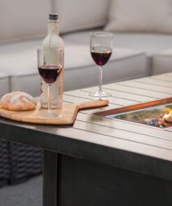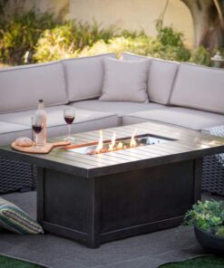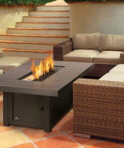 The perfect outdoor living space has a comfortable place to relax. a place to set your drinks and gather around. a place that is the focal point. Napoleon’s St. Tropez Rectangle Patioflame® Table is the perfect addition to your outdoor living space. It features a classic. linear design that will match any outdoor decor. The rustic bronze finish gives an antique style. while the linear gas burner adds a modern flair with a ribbon of flame. A stylish glass ember bed reflects the light of the flames warming you and providing a cozy atmosphere. The St. Tropez Rectangle Patioflame® Table puts out 60.000 BTU’s of heat providing beautiful dancing flames. and light for your outdoor space. The table itself hides the propane tank behind an easy to access door.
