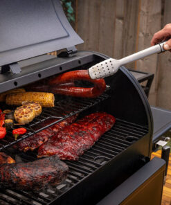 With an included folding front and side shelf. you’ve got all the extra space you need for food prep and storage. right out of the box. The tall. tapered legs provided a powerful. ergonomic stance for easy-on-the-back grilling. Also making your life easier is improved hopper pellet cleanout (now positioned underneath to let gravity to do its thing). easy ash cleanout with the removeable undermount burn pot. and a rapid igniter to get grilling faster than ever before.