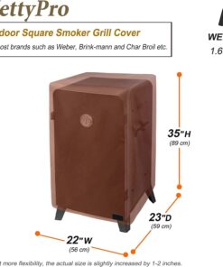 - Dimensions: The patio cover of smoker grill fits up to 22 W x 20 D x 35 H. For greater flexibility. the actual product dimensions are 24 W x 21 D x 35 H. Please measure carefully before purchasing.