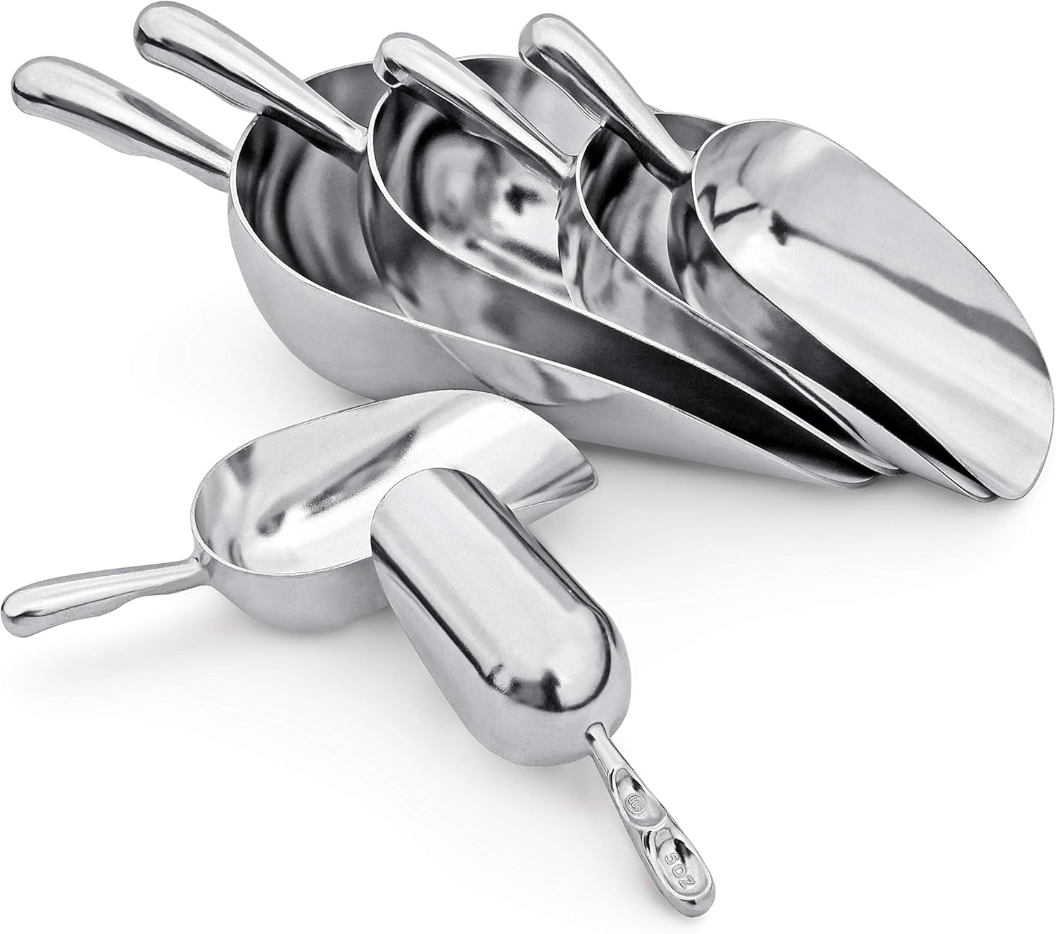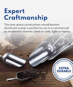 - Commercial-Grade Aluminum utility scoop great for ice. sugar. flour. popcorn. and candy.