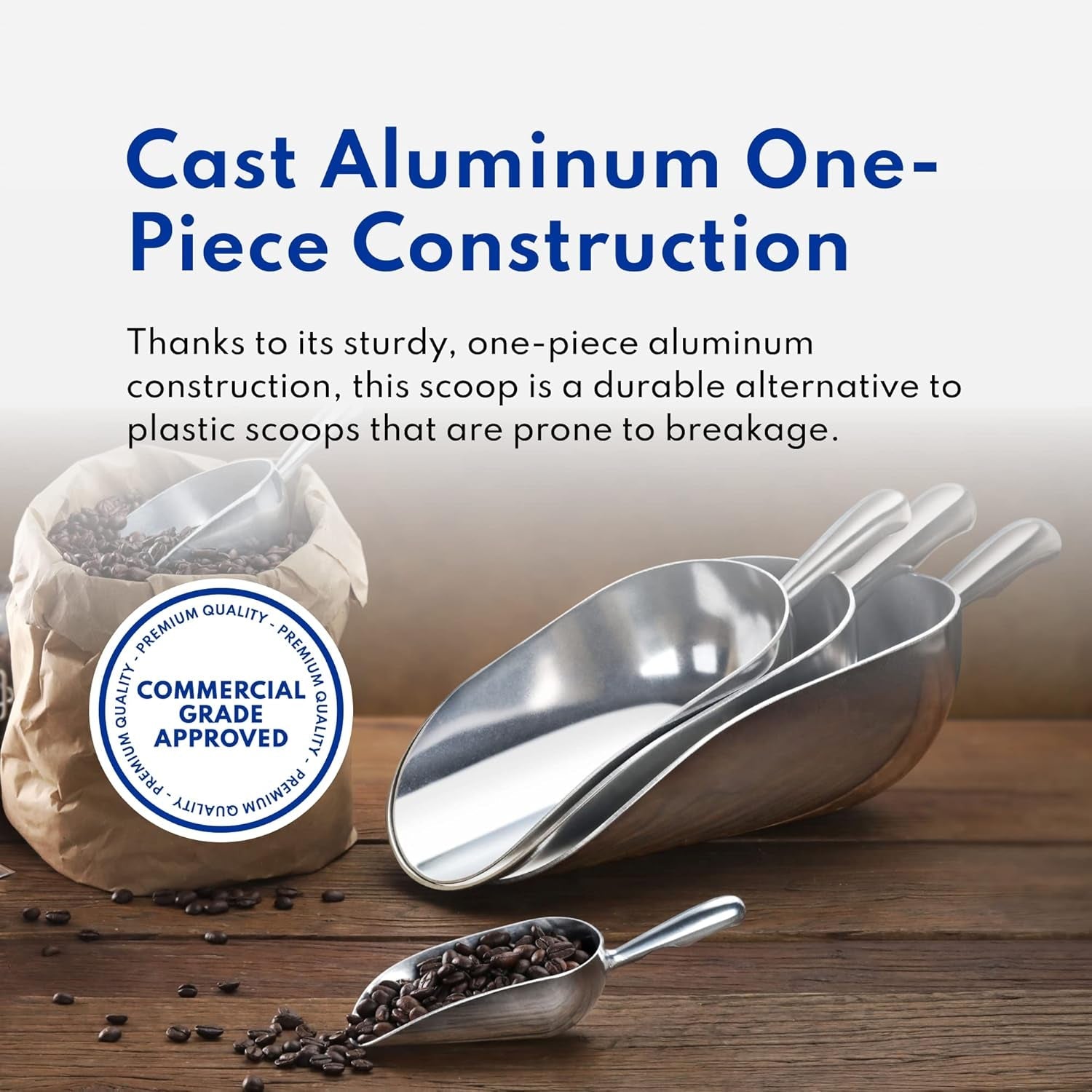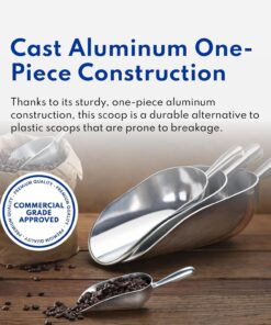 - One-piece aluminum construction. this scoop is a durable alternative to plastic scoops that are prone to breakage.