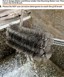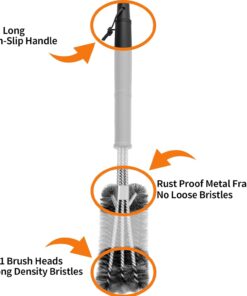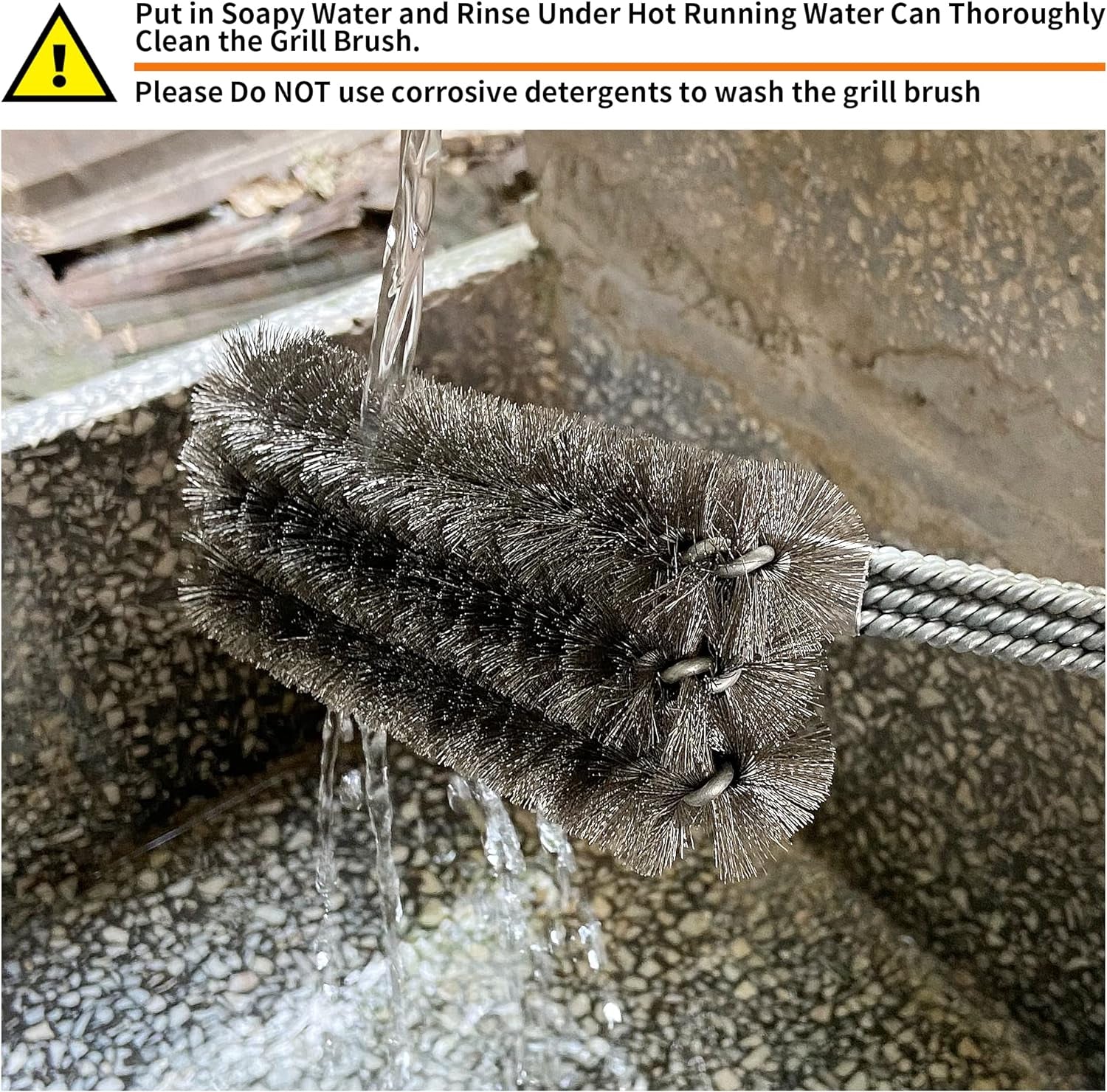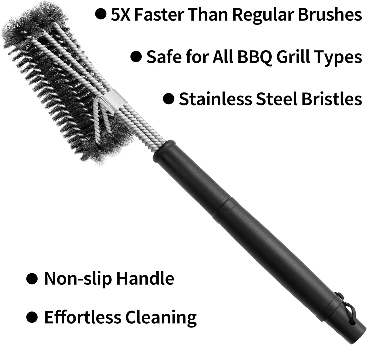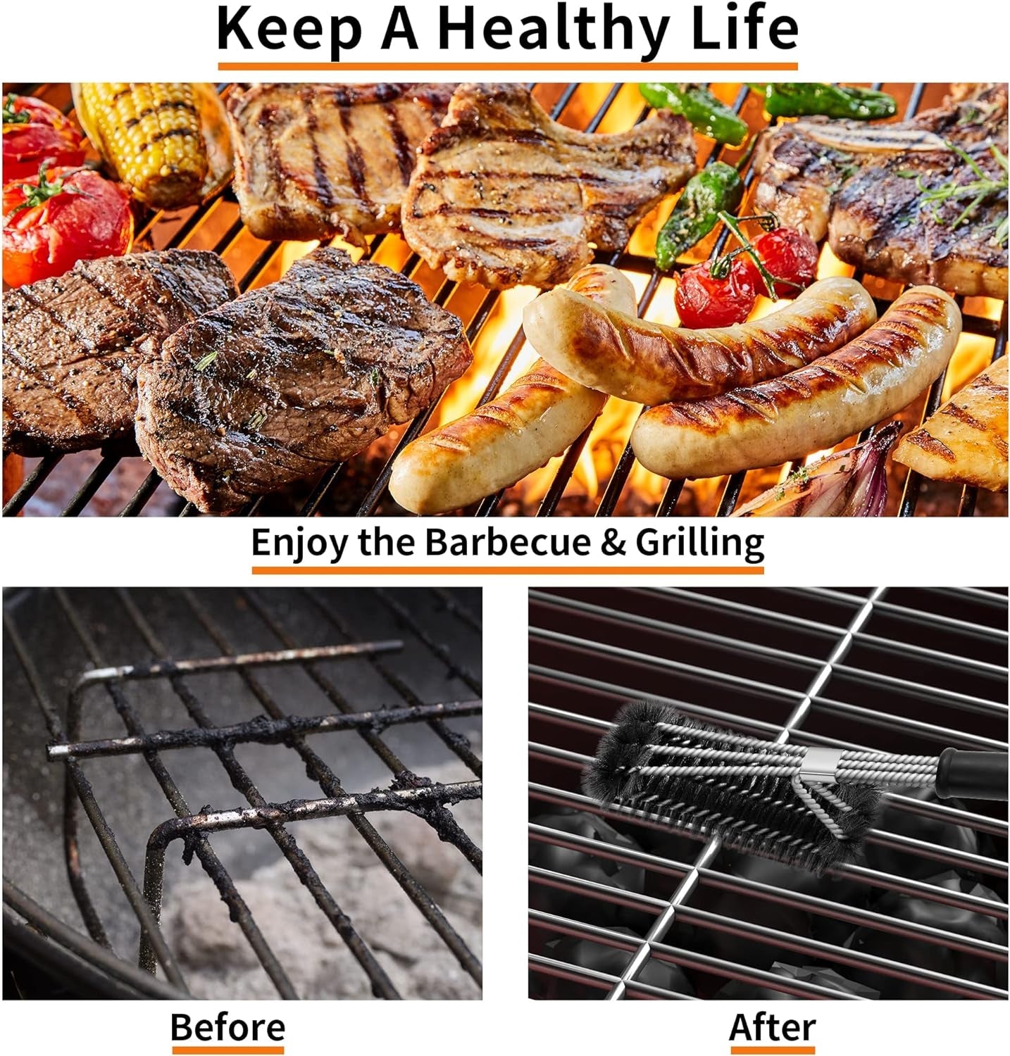- 3 in 1 BBQ Brush Tool – Triple head with thicker and heavy-duty stainless-steel bristles– can effortlessly cover and clean larger area at one time. Quickly remove stubborn stuck-on debris with ease. for easy and efficient cleaning of your grill.