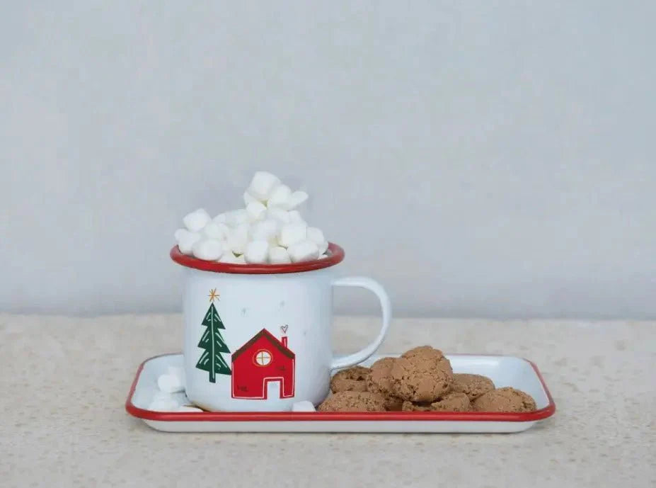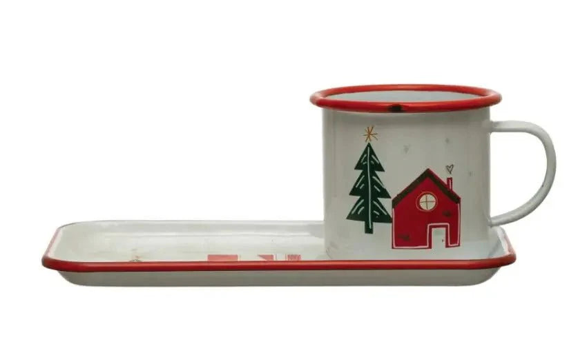 Get in the holiday spirit with this mischievous enamel tray and mug set. It’s perfect for leaving out cookies and milk for Santa. or just adding a festive touch to your home decor. Ho ho hope you’re on the nice list!