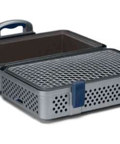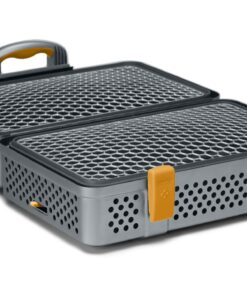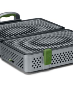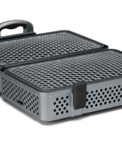 A premium-quality charcoal barbecue grill & smoker with unparalleled portability. Now with twice the ventilation. this 28-pound carrying case houses two heavy-duty. diecast cookboxes and delivers up to 425 square inches of grilling space. NOMAD packs a punch in the durability department with interior cast aluminum construction.