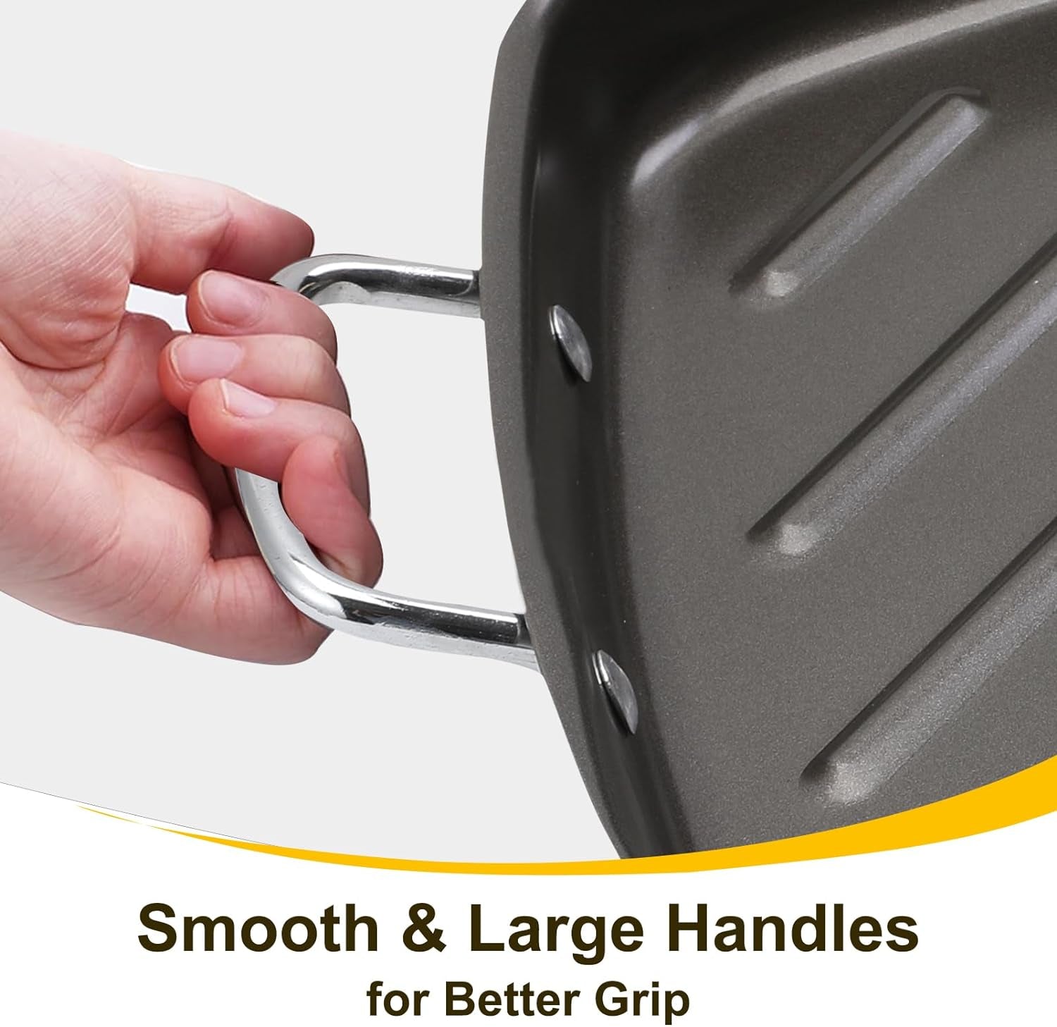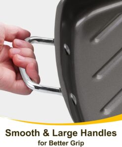 - Stainless Steel Handles: The raised handles prevent your hands injury from direct contact with hot surfaces. which allow you carry and serve easily from the grill