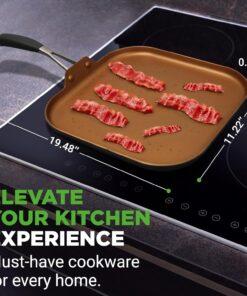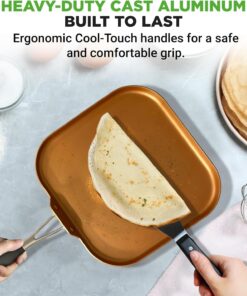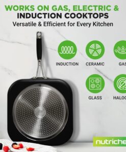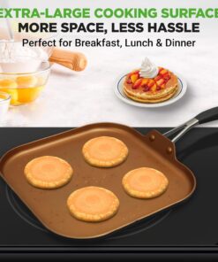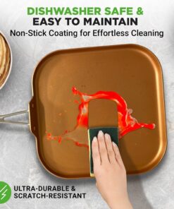Nutrichef Copper Pan Non-Stick Coating Inside. Hard-Anodized Look Heat Resistant Lacquer Outside. Silicone Handle NCSQPA. 1 Griddle