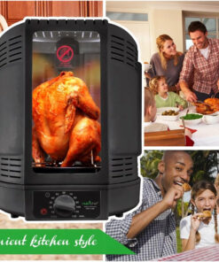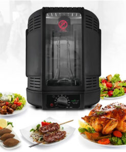 - ACCESSORIES INCLUDED: Comes complete with skewer rack with 8 skewers. cooking basket tower. roasting rack. poultry tower. and nonstick drip tray. Perfect for whole chicken roast. breasts. turkey. lamb. beef. and pork