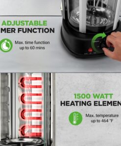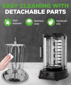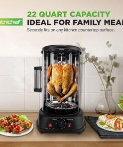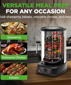 - ROTATING VERTICAL OVEN DESIGN: Effortlessly cook a variety of dishes with this versatile oven. Its rotating vertical design ensures even cooking. perfect for kebabs. shawarma. rotisserie. and more.