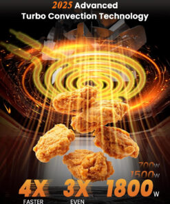 - COOK 4X FASTER. 3X MORE EVEN: Brio’s 2025 Advanced Turbo Convection tech. with 6-Blade 4.5-Inch heating fan and 700/1500/1800W power. promotes cyclonic convection circulation. Enjoy quicker meal prep with crunchy. golden brown exteriors and juicy insides.