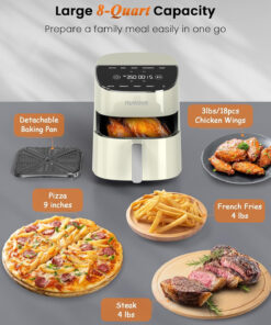 - WHAT’S INCLUDED – The Nuwave 8 Quart Air Fryer comes with PFAS Free ceramic non-stick air fry base tray. PFAS Free ceramic non-stick circulation riser for frying and grilling. and owner’s manual.