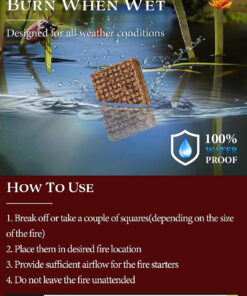 - So easy. it’s like lighting a birthday candle! Just simply place this 100% waterproof fire square in the desired location. light the corner of the lightweight fire starter cube. and watch it burn for up to 6-8 minutes! Perfect for camping fire. backyard barbecues. charcoal grill. or even cozy nights by the fireplace!