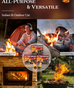 ALL-PURPOSE FIRE STARTER: Premium bbq fire starters ideal for wood stoves. pizza oven. coal stoves. fireplace pellets. indoor fireplaces. charcoal grill. charcoal chimneys. outdoor camp kitchen. backyard campfires. BBQ grill. fire fit. cooking. firewood. hunting trips. emergency survival and more.