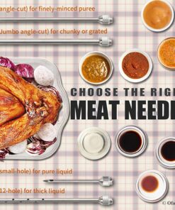 - Easy to Use & Dishwasher Safe–Ergonomic threaded design. easy to assemble or dismantle. 2-oz large capacity injection barrel minimizes refills; plunger handle offers a comfortable grip and friendly pressure control; 4 interchangeable turkey needles w/ multi-holes for deep penetration and perfect sauce distribution. like chunky marinades or liquid brine.