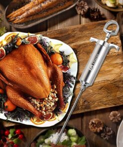 - Juicy. Tender & Yummy for Every Bite–our food injector is solidly built to last to intensify flavors of Thanksgiving / Christmas turkey. beef brisket. pork. lamb. chicken. goose. duck; inject jelly / pudding into donuts. rum into strawberries. brine into home-cured meats; practical for kitchen tools. holidays. BBQ. grill. family party. bonfire party!
