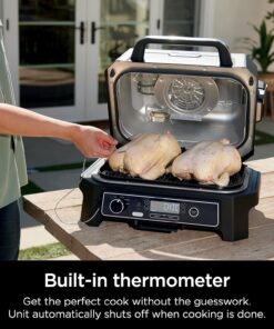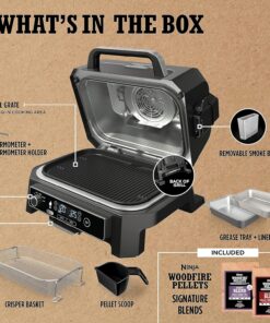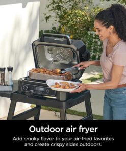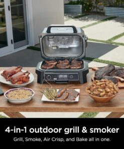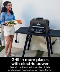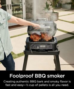 OG850 Woodfire Pro XL Outdoor Grill & Smoker with Built-In Thermometer. 4-In-1 Master Grill. BBQ Smoker. Outdoor Air Fryer. Bake. Portable. Electric. Blue
