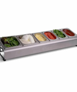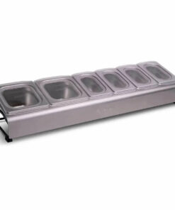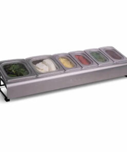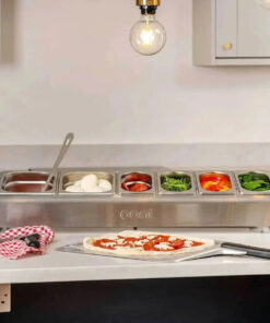 The two (2) 1.6L and four (4) 0.8L Ooni Pizza Topping containers ensure you have plenty of toppings. The custom-fit clear lids for each container means they can be easily stacked and stored in the fridge. The weather-resistant. powder-coated frame and stainless steel cover fit perfectly on our Ooni Modular Tables and it is easy to transport for cleaning and storage. Dimensions: 30.5W x 9.4L x 6.3″H.